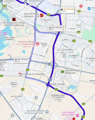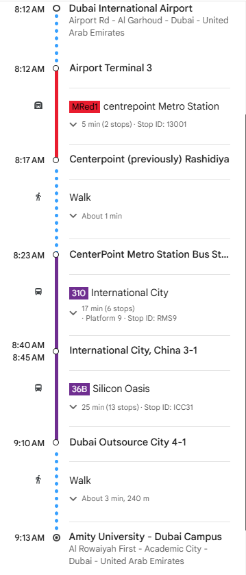 The easiest way is to use Tarin from the airport (Terminal 3) to Dubai Outsource City 4-1, which takes about 1 hour.